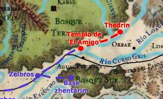 Los jugadores siguen dirigiéndose al norte en busca del templo donde los seguidores de “El Amigo” han llevado la Piedra de Marak. Van paralelos al río Delimbiyr durante unos días hasta divisar una ramificación de las montañas Cimagrís. Guilliam les índica, que siguiendo este camino, en el paso entre las montañas hay un fuerte de los zhentárim, que usan en su ruta a través de Anaurokh, y que es más recomendable desviarse un poco hacia el este, hacia un paso menos claro y poco usado que él conoce. Aunque no se fían de él demasiado, deciden hacerle caso, pues lo que dice no carece de lógica.