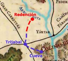 muy lejos del camino Largo, al otro lado del bosque Alto, al sur de Trijabal.