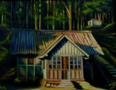 claro se alza una sencilla casa de madera de dos pisos. Tras ella, se